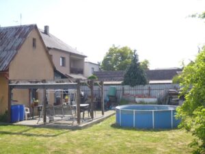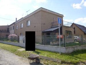 Jedná se o podíl 1/8 na zděném rodinném domě se dvěma nadzemními podlažími pod plochou střechou krytou standardní krytinou. Objekt je situovaný do nepravidelného tvaru, nachází se v zastavěné, vnitřní části obce Starý Kolín, v řadové zástavbě jako řadový krajní. Parkování je možné na vlastním pozemku. Pozemky leží v mírně sklonitém, sklonitém terénu, tvoří jednotný funkční celek a jsou přístupné po veřejné zpevněné komunikaci, na pozemcích p.č. 1755/40 – ostatní plocha a p.č. 1755/9 – ostatní plocha, které jsou ve vlastnictví obce Starý Kolín. Dům je napojen na inženýrské sítě: elektro, hloubková kanalizace, obecní vodovod a plynové vedení. Příslušenství stavby hlavní tvoří jednak vedlejší stavby, kdy za rodinným domem se nachází přístřešek dřevěné a ocelové konstrukce pod pultovou střechou krytou standardní krytinou, na který vpravo navazuje přízemní, zděná vedlejší stavba pod sedlovou střechou krytou plechovou krytinou, přičemž za touto se dále nachází přízemní vedlejší stavba kombinované konstrukce pod pultovou střechou krytou vlnitým eternitem. Dále jej tvoří příslušenství, které je tvořeno těmito venkovními úpravami, tj. oplocení (drátěné pletivo v ocelových rámech na ocelových sloupcích a betonové podezdívce), vrata z ocelové konstrukce s výplní z drátěného pletiva, vrátka z ocelové konstrukce s výplní z drátěného pletiva, zpevněné plochy, dřevěná pergola, studna, přípojky IS.